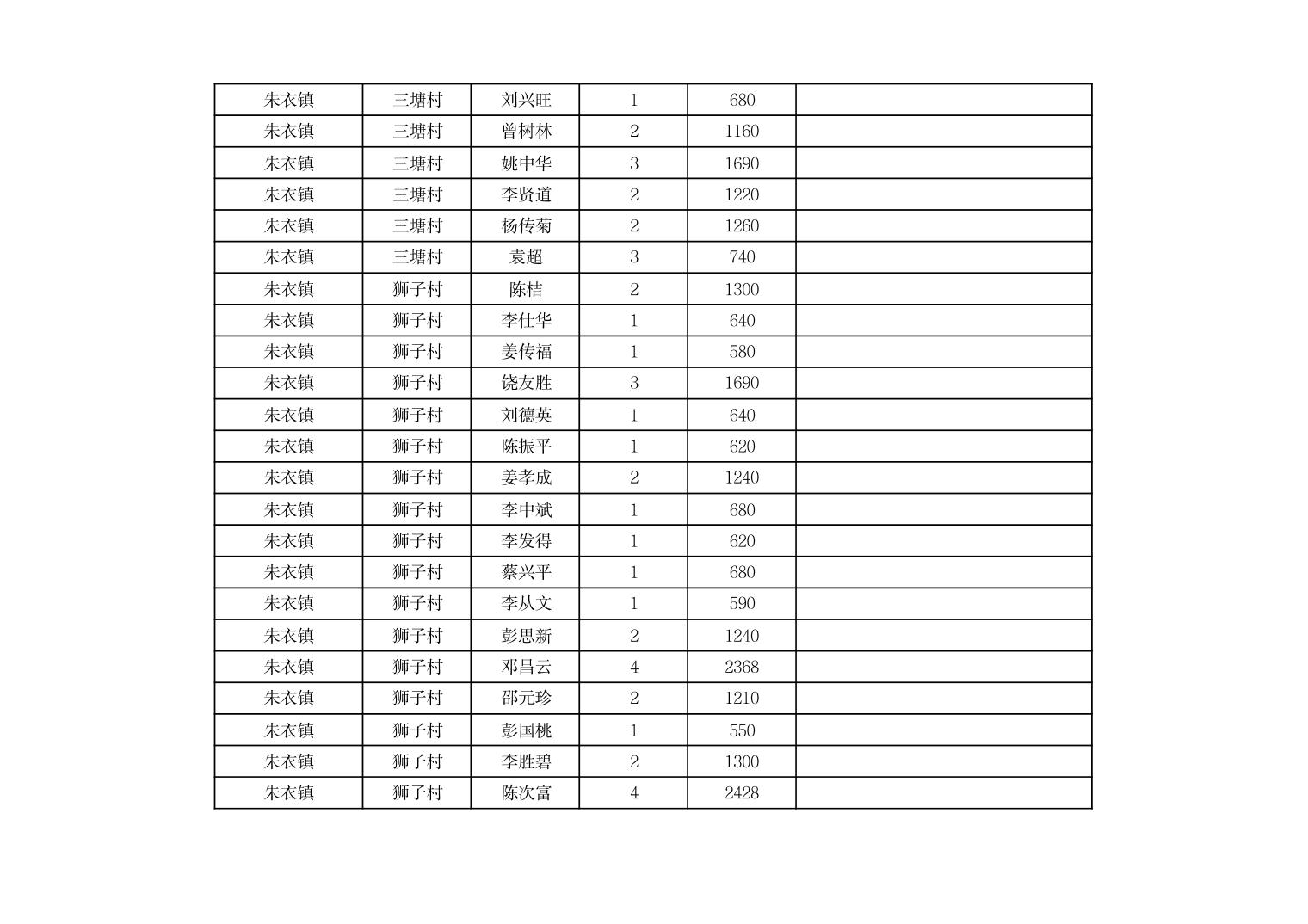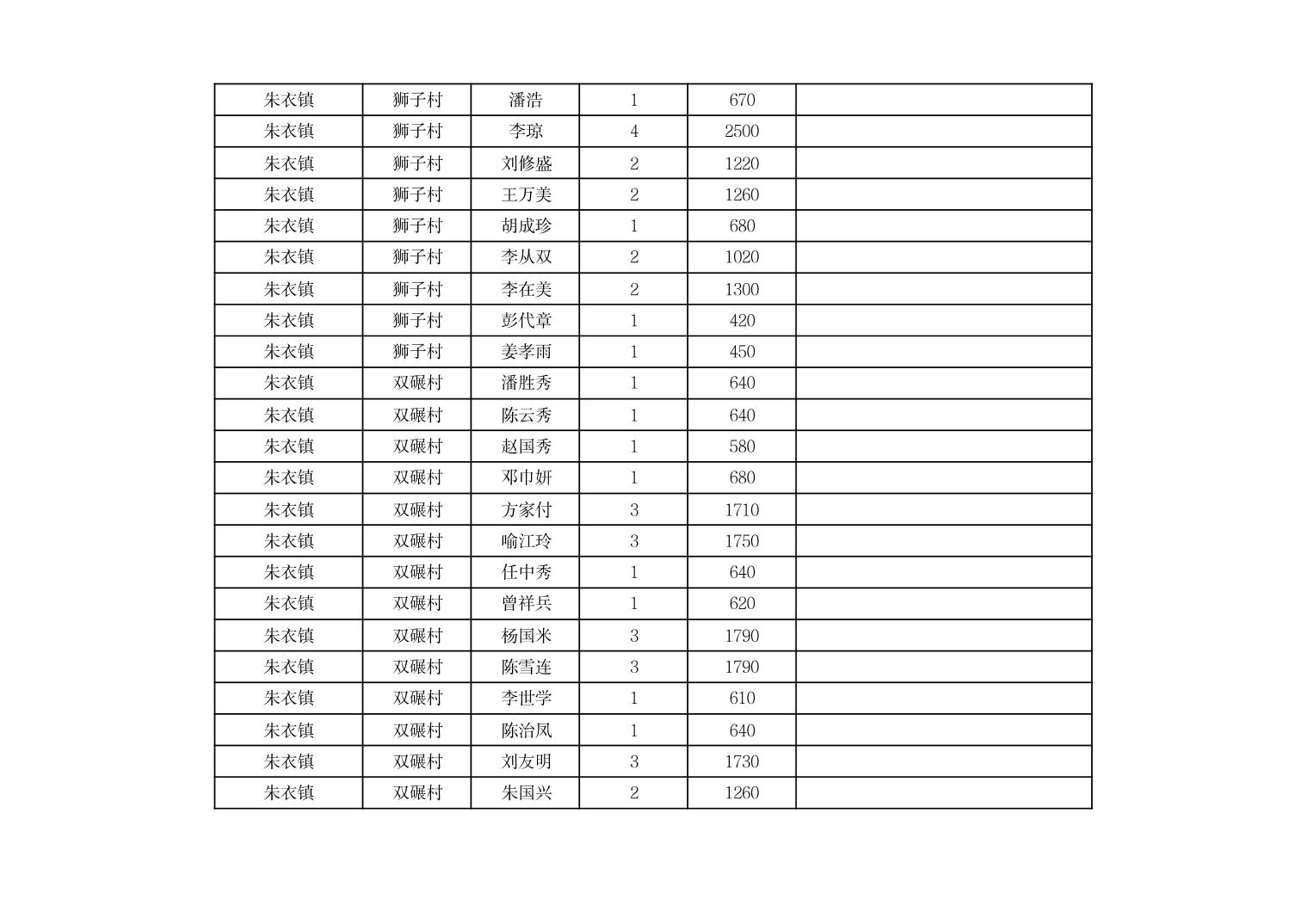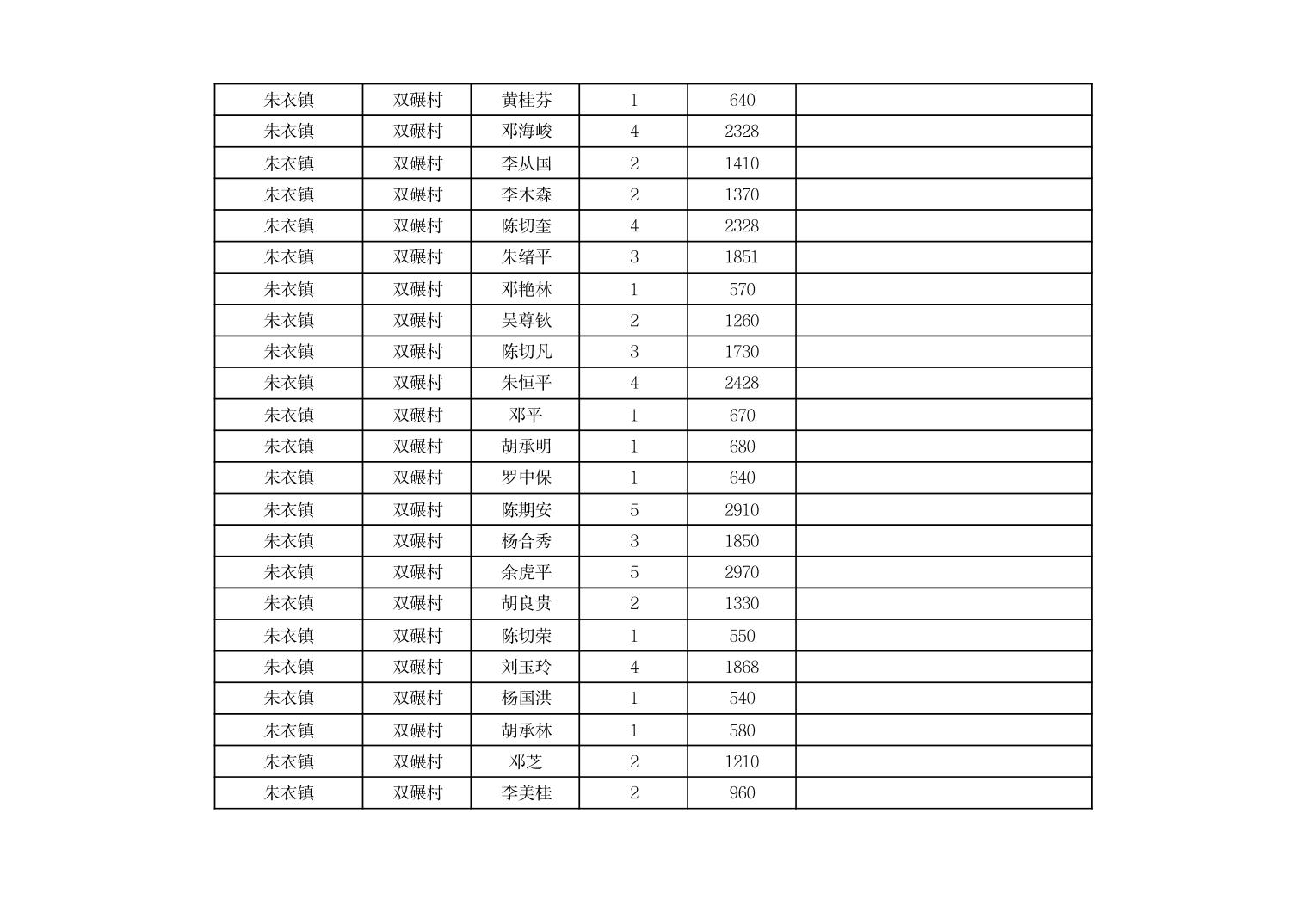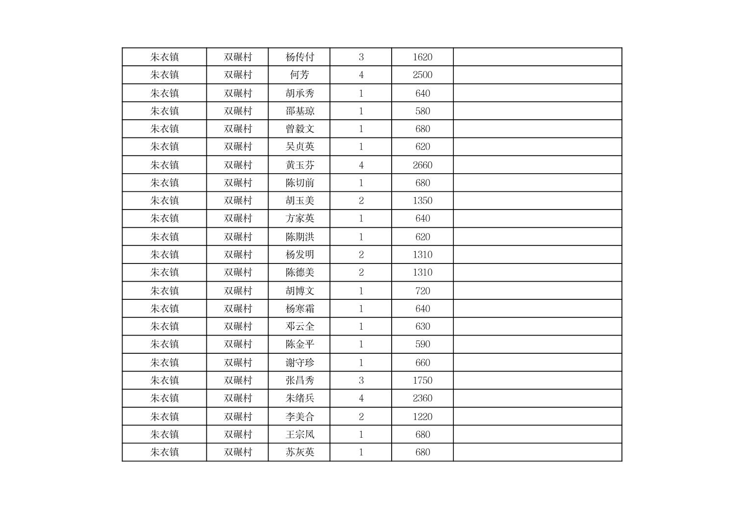 2025年10月奉节县朱衣镇农村低保家庭保障金发放花名册