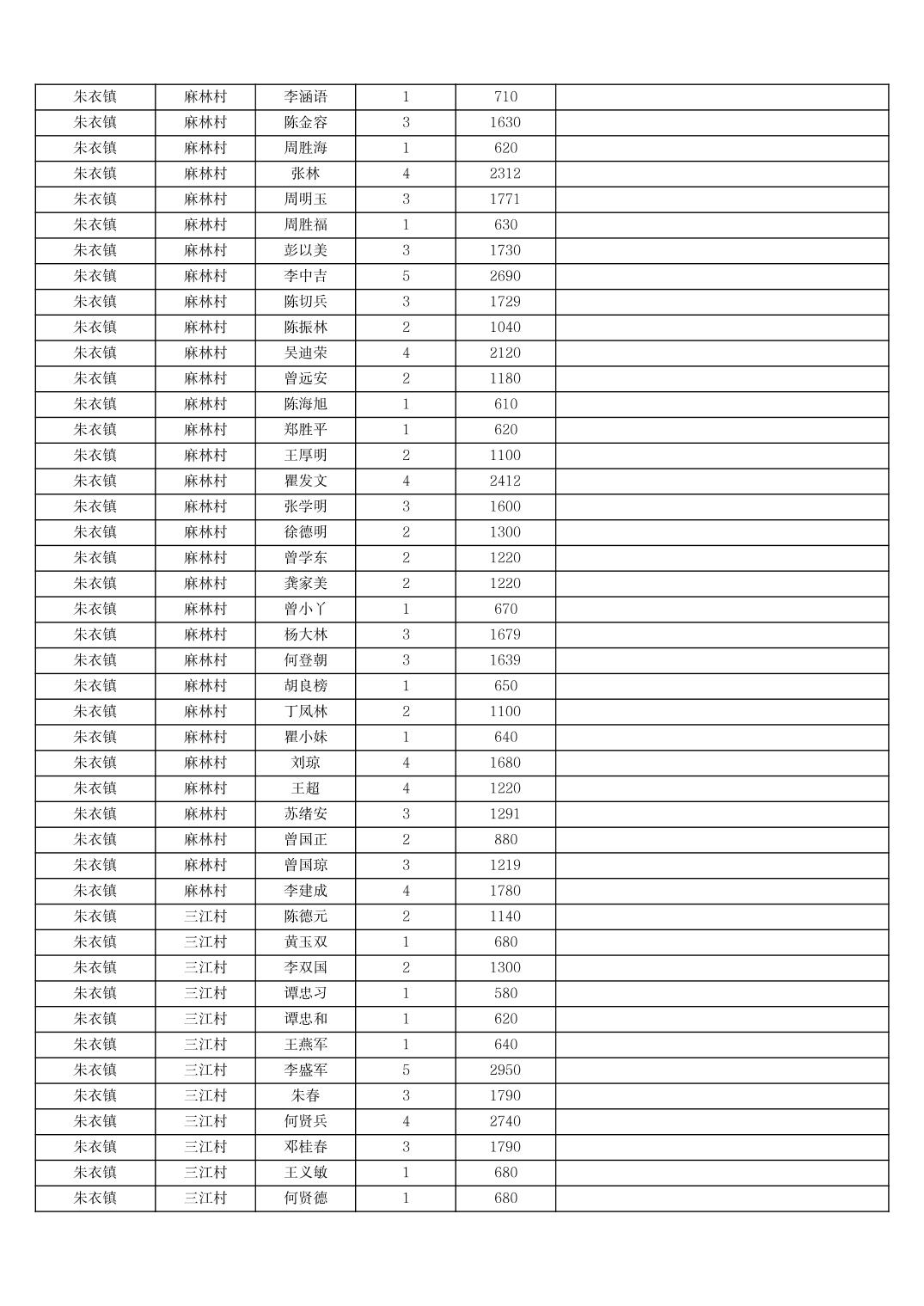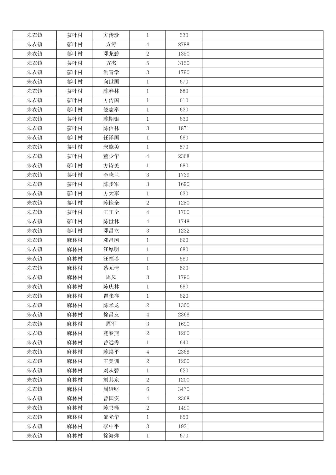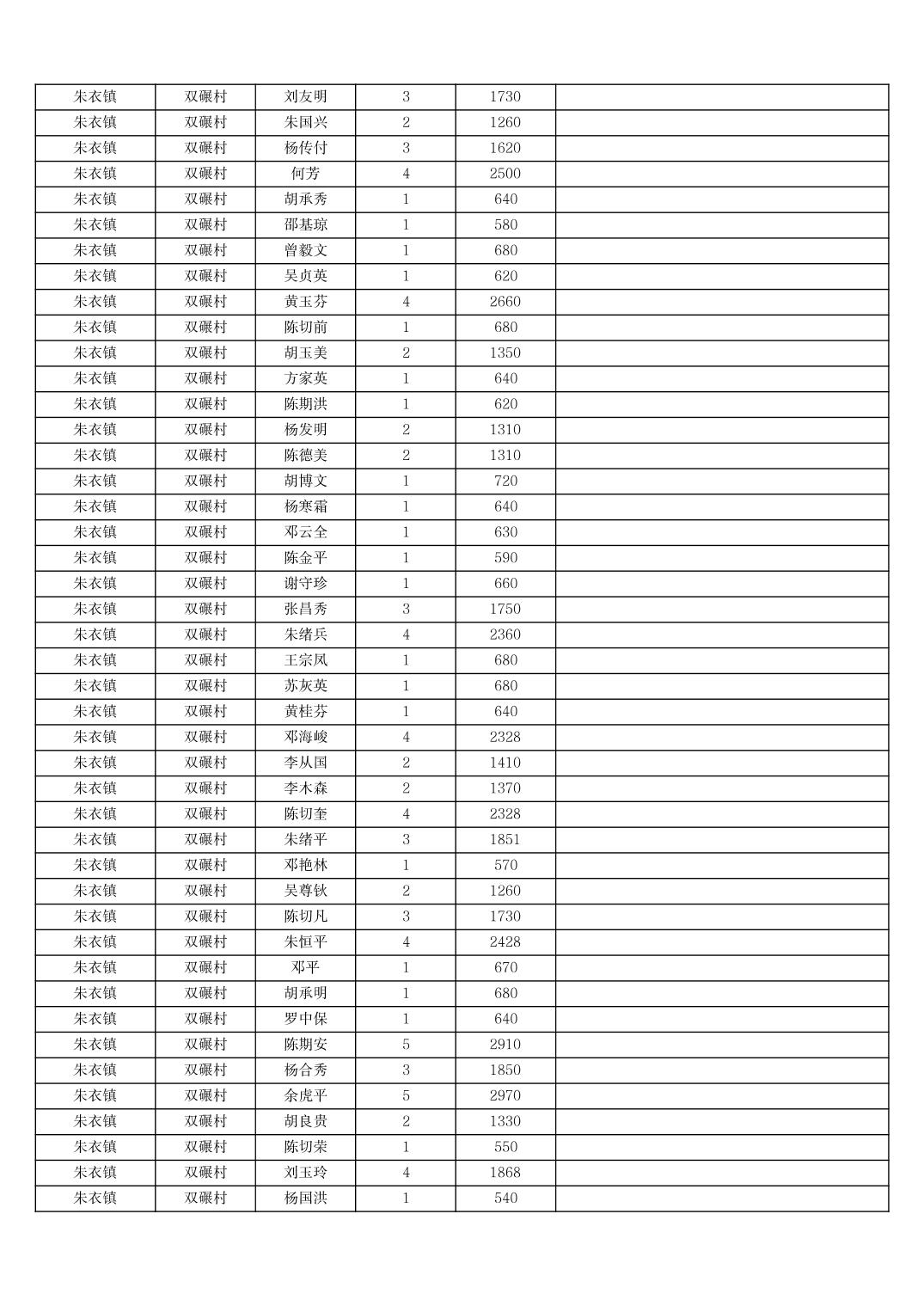 2025年11月份奉节县朱衣镇农村低保家庭保障金发放花名册