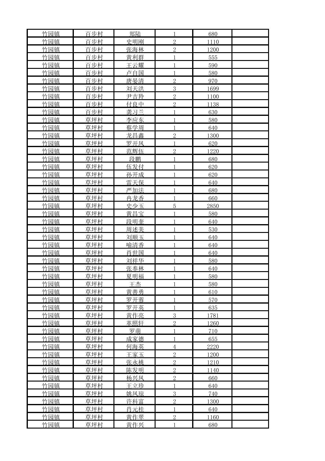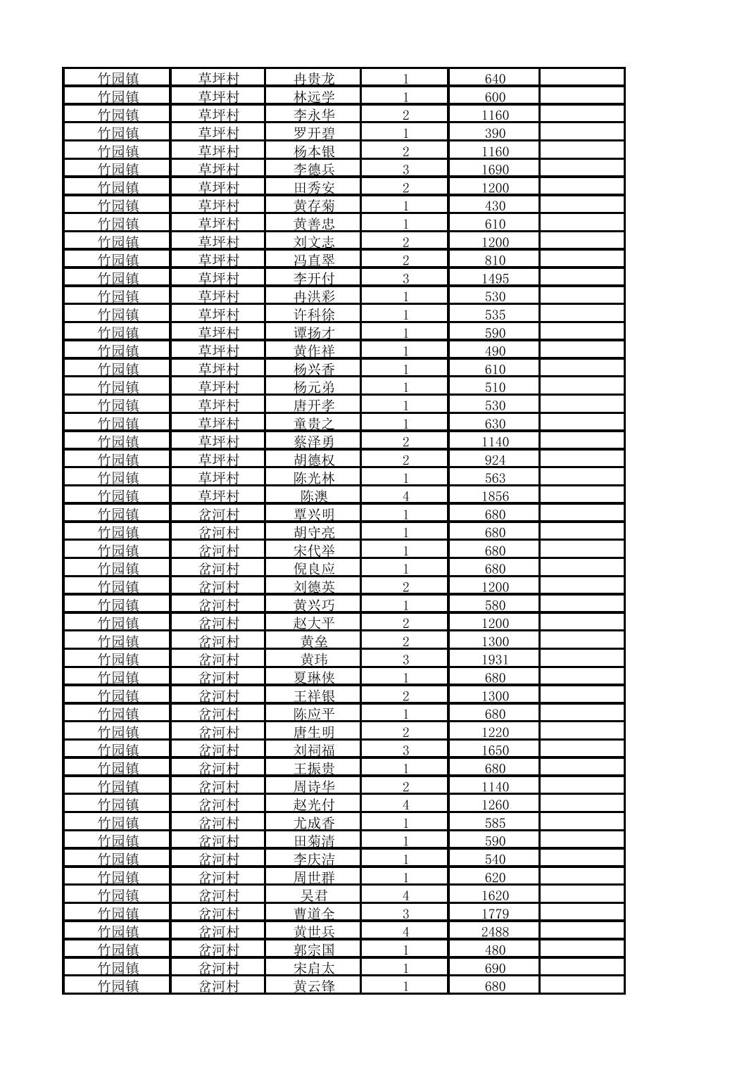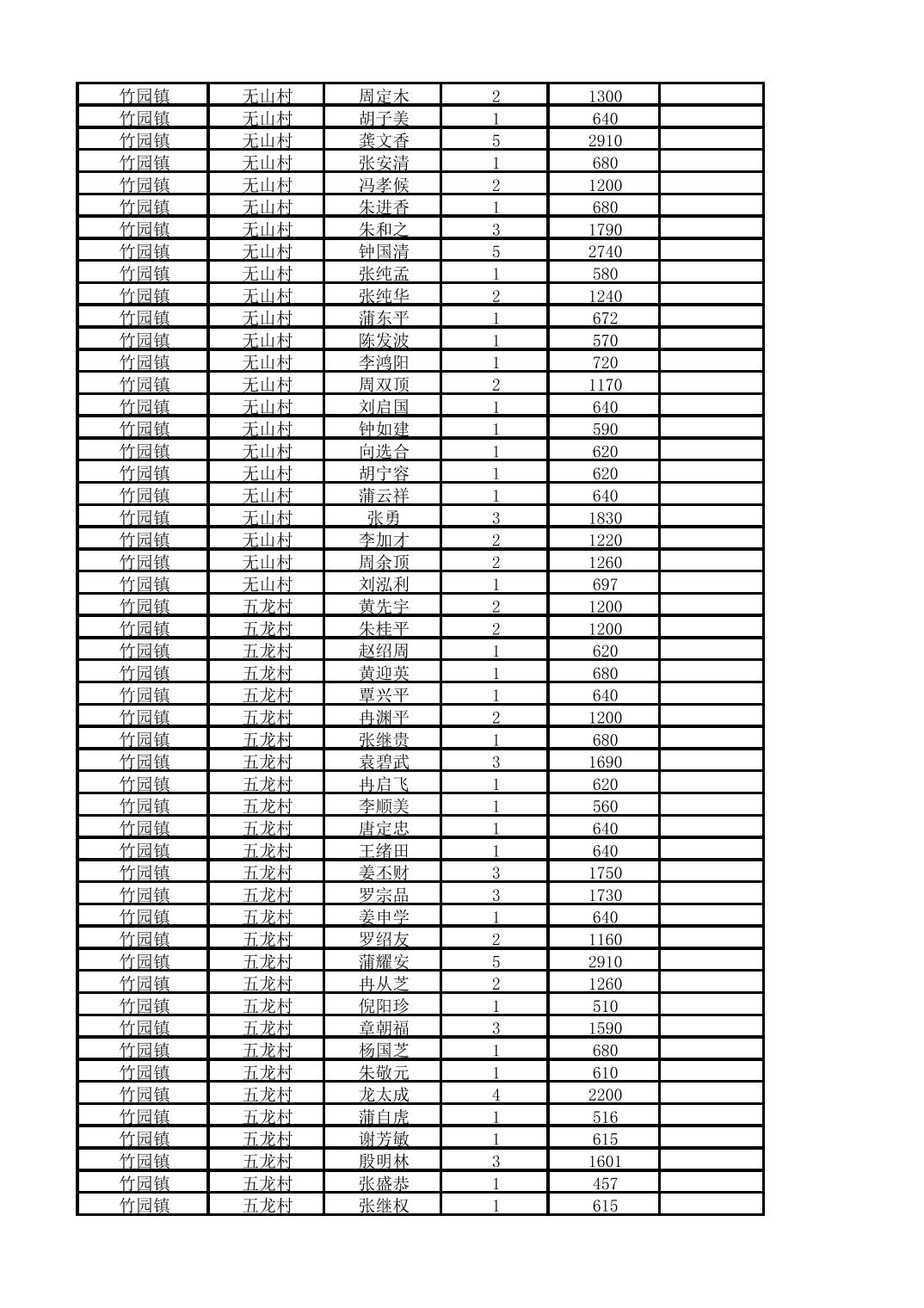 奉节县竹园镇2025年10月份农村低保家庭保障金发放花名册