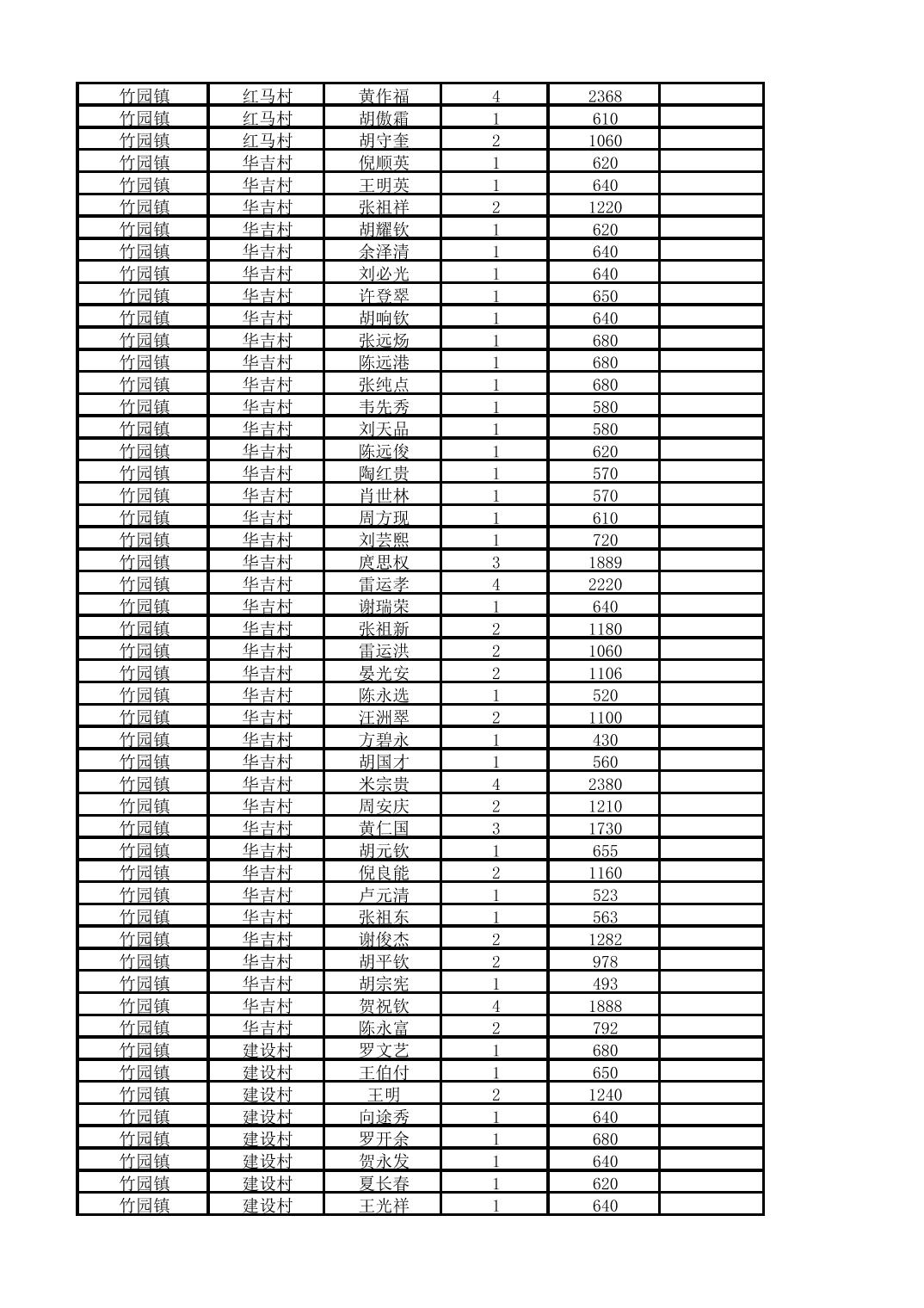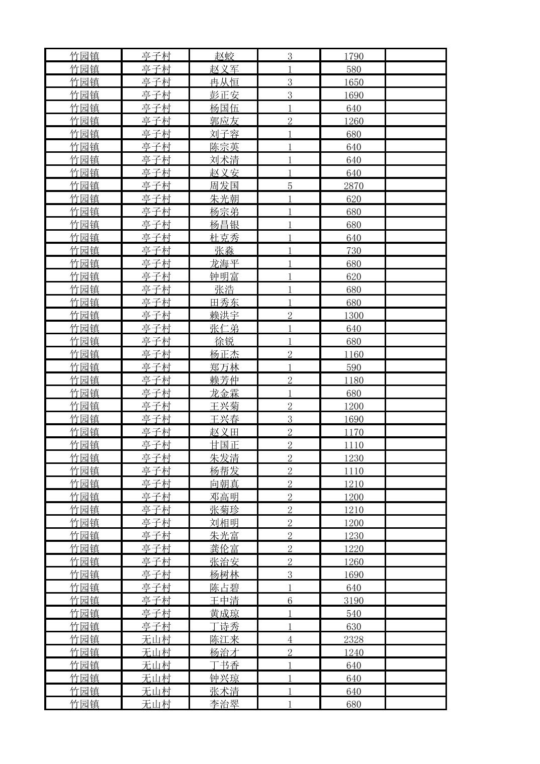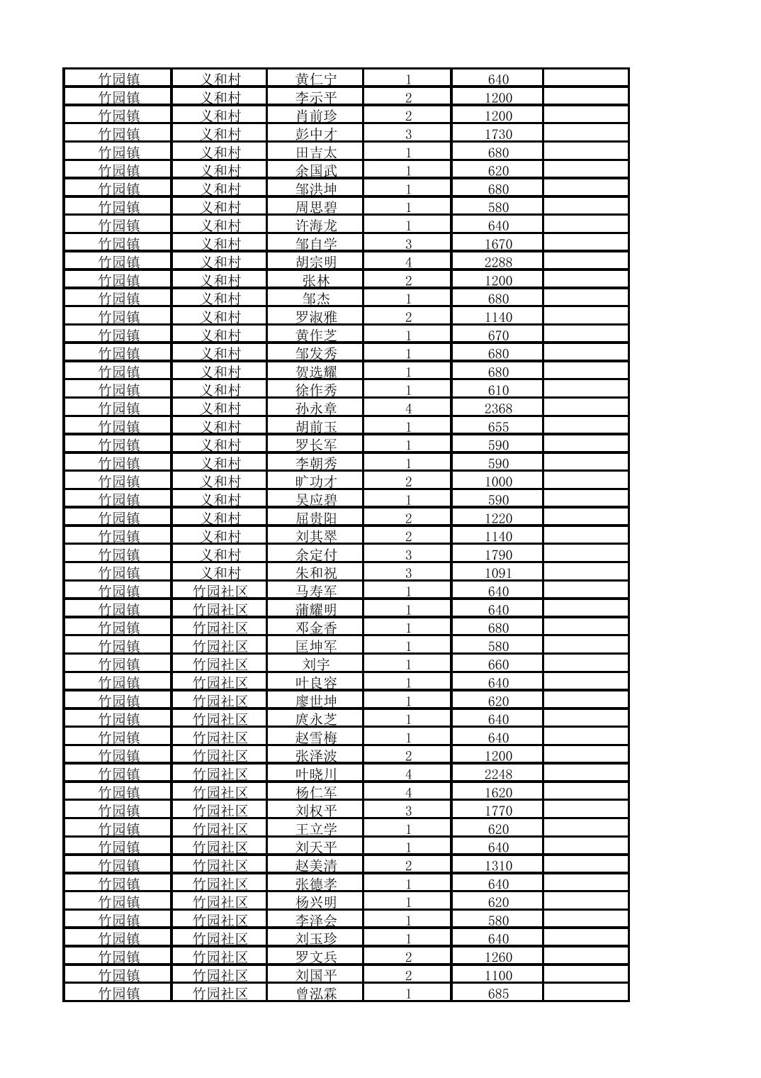 奉节县竹园镇2025年10月份农村低保家庭保障金发放花名册