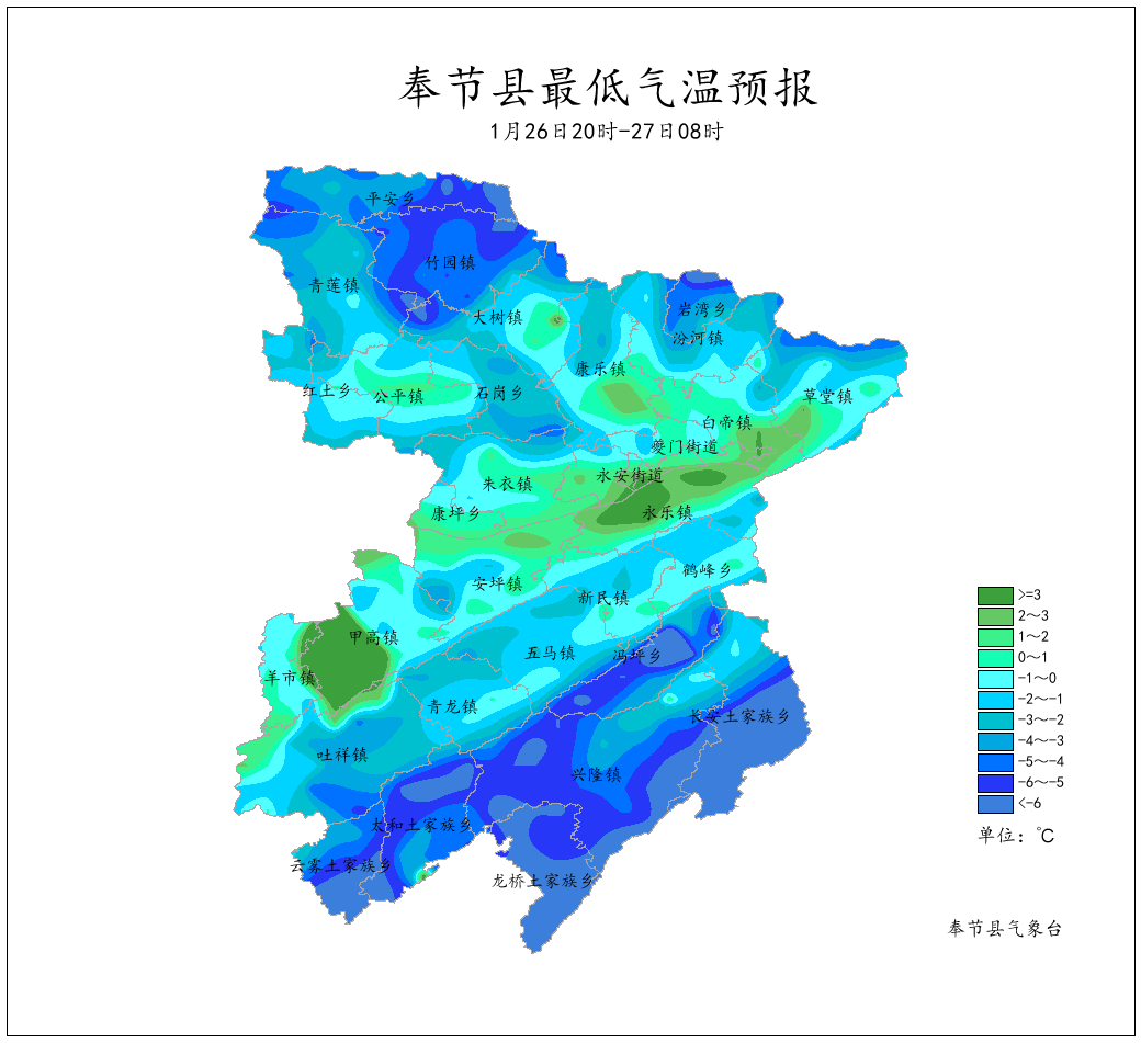 图5 26日20时―27日08时最低气温预报图