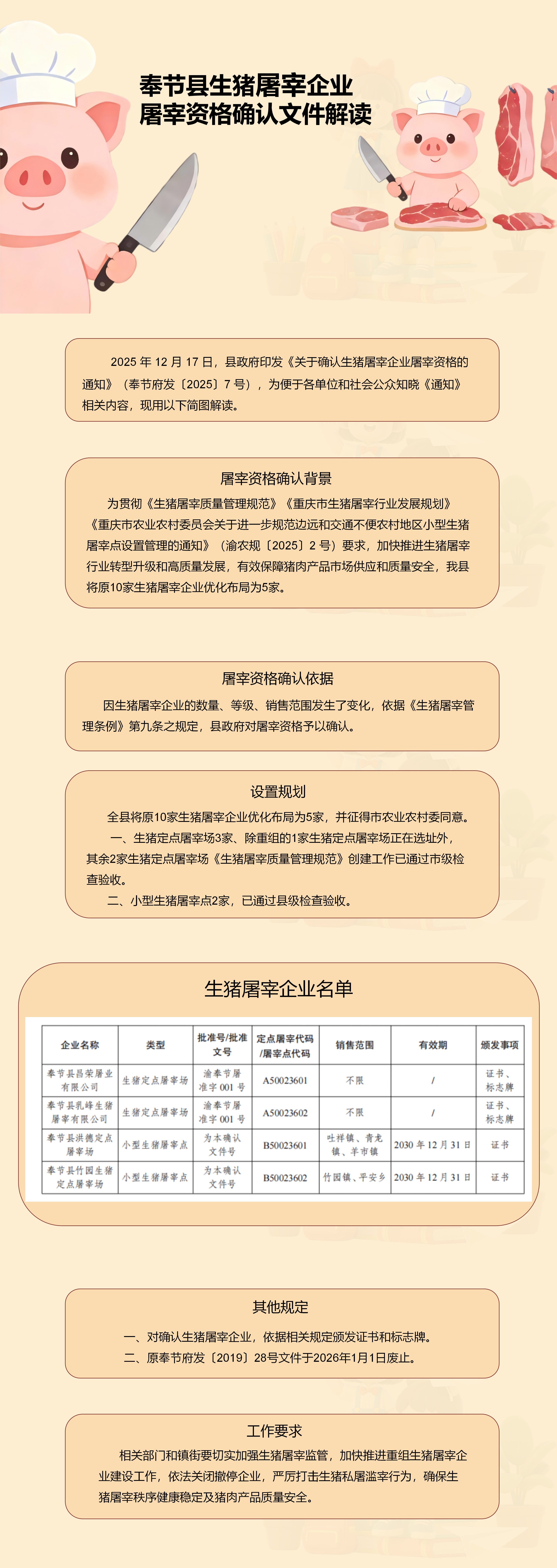 一图读懂《奉节县人民政府关于确认生猪屠宰企业屠宰资格的通知》