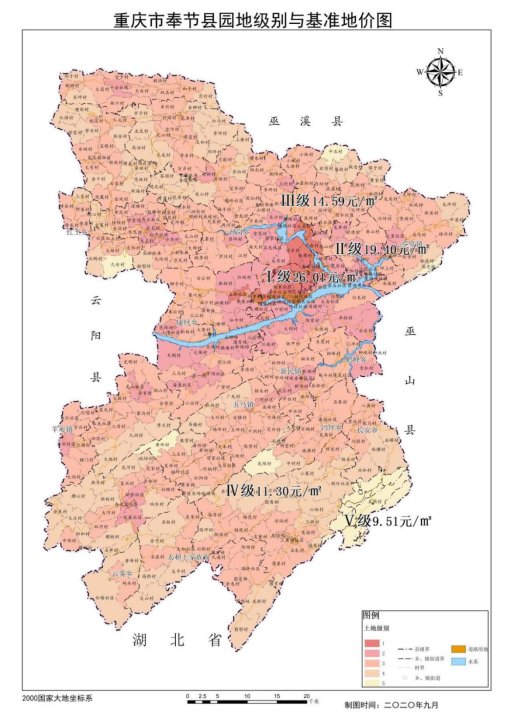 本次公布的奉节县农用地级别和基准地价的适用范围包括奉节县行政辖区内现有农用地,包括耕地和园地,其中:耕地包括水田和旱地,园地包括果园、茶园、其他园地。基准地价的表现形式为土地单价(单位:元/平方米)。